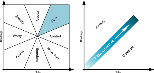Mental state and flow channel according to Mihaly Csikszentmihalyi (Finding Flow, 1997).
