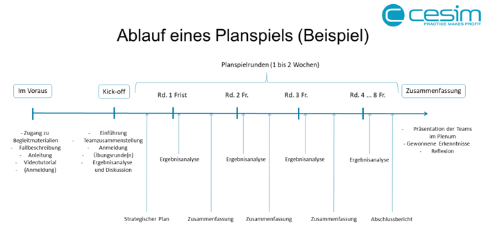 - Übungsrunde(n) - helfen den Studenten, die Simulation kennenzulernen.