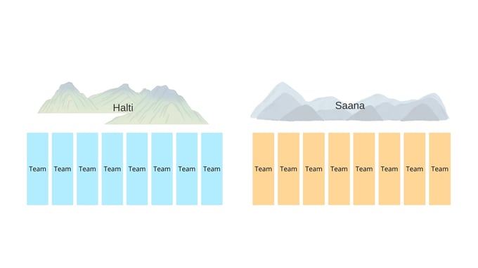 To ensure a fair competition, the teams were split randomly into 2 groups using generative AI, each group represented by a landmark from the northern part of our home country, Finland.