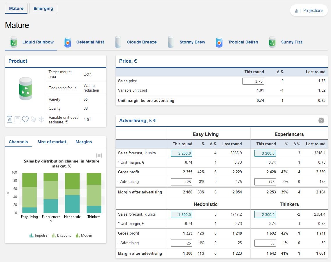 The core of the Cesim Elite competition was centered around six simulation rounds using Cesim Marketing FMCG, which incorporated Environmental, Social, and Governance (ESG) decisions. This added layer required teams to not only focus on profit margins and market share but also consider the broader impact of their decisions on society, the environment and the customer preferences in the simulation regarding corporate responsibility.