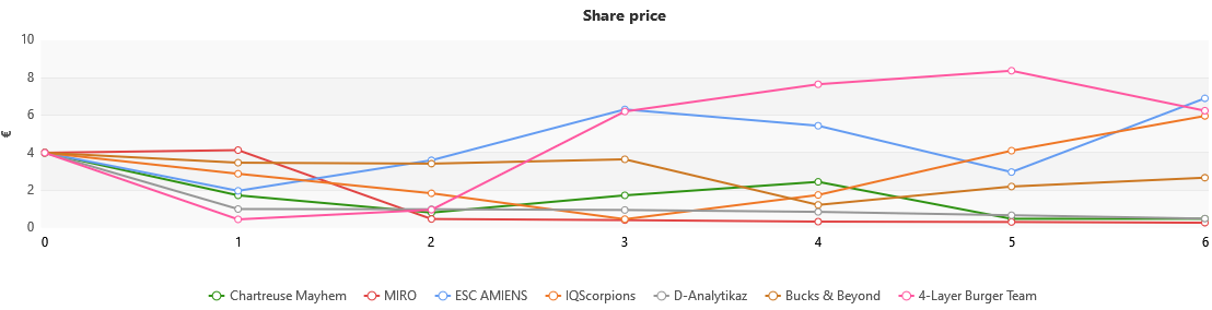 Share price evolution, Universe "Kallio" - Cesim Elite Europe 2024
