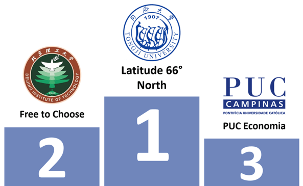 El top 3 en la tarea del caso fueron el equipo "Latitude 66° North" de la Universidad Tongji (China), el equipo "Free to choose" del Instituto de Tecnología de Pekín (China) que logró tomar el segundo lugar en esta parte de la competencia también, y el equipo "PUC Economia" de PUC Campinas (Brasil)