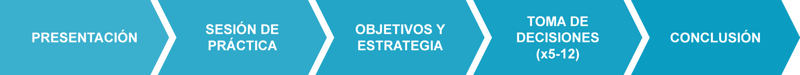 El instructor decide el número de rondas que se jugarán (5-12). Ver el ciclo que se detalla a continuación.