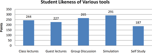 De plus, les participants qui ont déjà pris part à une simulation de gestion cherchent également à participer dans le futur à un cours qui comprend l'utilisation de ces outils pédagogiques. La raison tient au fait que les simulations sont perçues comme un outil pédagogique ludique et pratique. Les étudiants sont intéressés de pouvoir vivre une telle expérience dans leurs enseignements.