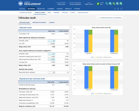 Leurs décisions portent notamment sur la tarification des véhicules et des services associés, la gestion des stocks, les investissements dans l'atelier et l'espace de vente, la publicité, la gestion du personnel ainsi que le financement.