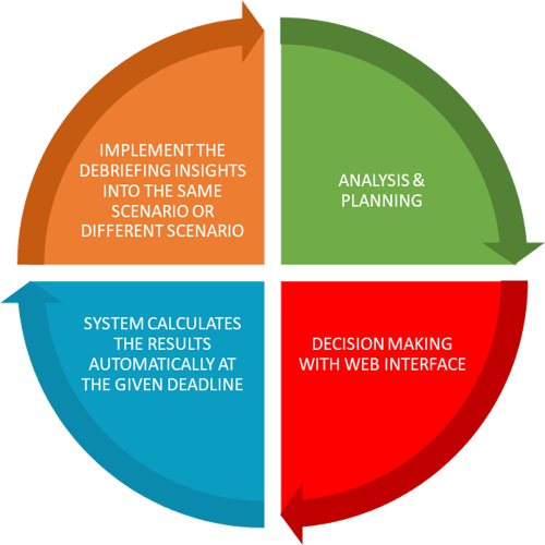 After the introduction, the participants are encouraged to play the game without any instructor intervention. The instructor then debriefs on basis of attempt 1 results of participants.